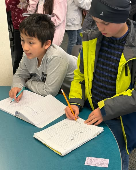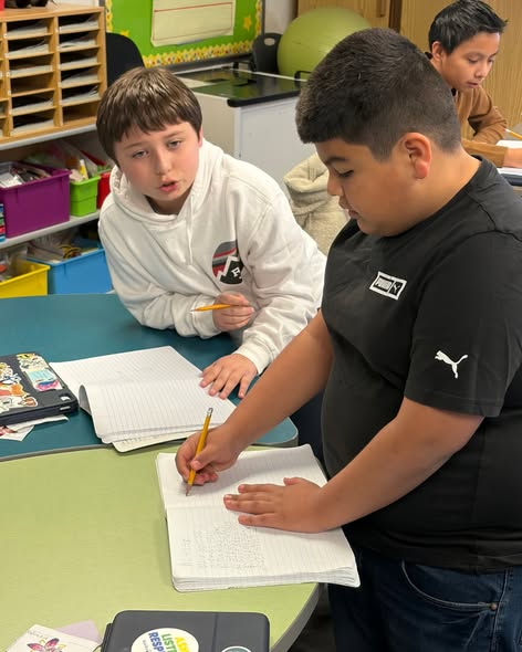 Fifth graders were in deep thought with evaluating and calculating a morning math problem with partners.