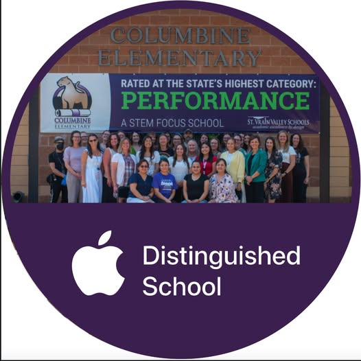 Columbine Elementary School has been recognized by Apple as a distinguished school for inspiring, imagining, and impacting teaching and learning through continuous innovation.